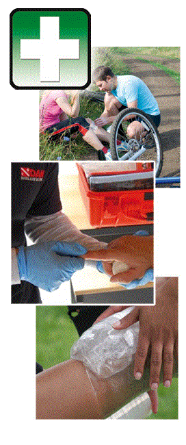 El programa del DAN First Aid está diseñado para impartir los conocimientos y habilidades necesarias para suministrar primeros auxilios a adultos en situaciones que no suponen un peligro inmediato de muerte (o tras haber suministrado el SVB en situaciones de peligro de muerte).